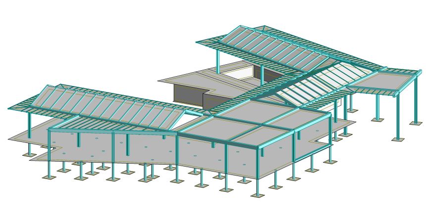 Dom Jednorodzinny w Obórkach Lokalizacja: Obórki, powiat piaseczyński. Powierzchnia całkowita: 580 m2 Rodzaj konstrukcji: stalowa z dachem na części drewnianym. Projekt budowlany i wykonawczy. Obiekt zrealizowany.
