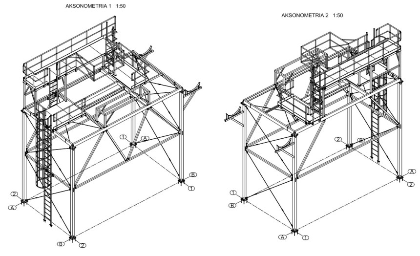 Konstrukcja Wsporcza Separatora Lokalizacja: Niepruszewo. Podkonstrukcja stalowa separatora wraz z pomostami serwisowymi. Projekt budowlany, wykonawczy i warsztatowy.